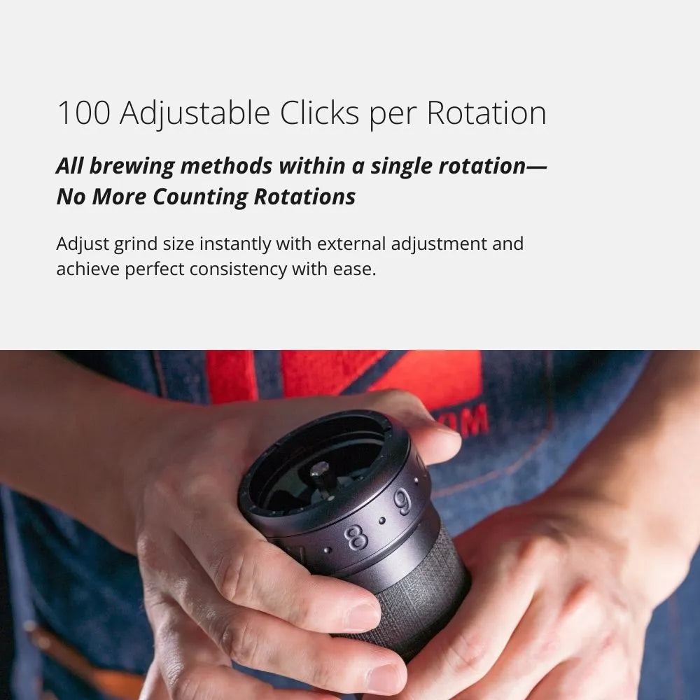 Featuring 1Zpresso’s Red Dot Design Award–winning external adjustment ring and the specialized K Burr, the K-Ultra Manual Coffee Grinder brings thoughtful upgrades to the popular K-Max. Its newly rounded body offers improved handling comfort, while the foldable handle enhances portability. A finer adjustment mechanism with smaller grind increments allows you to dial in your settings with greater ease and precision—perfect for any brew method.