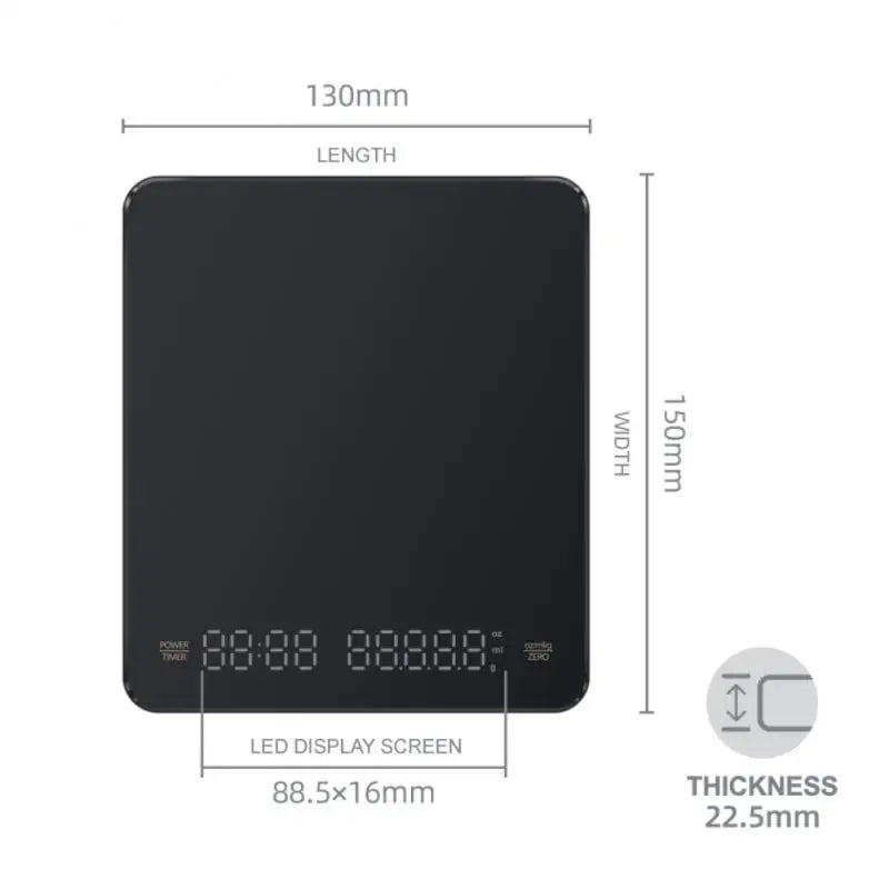 ćTiming functionćThe longest time: 99 minutes and 59 seconds (left button) Suitable for hand-brewed coffee weighing, the maximum load is 3kg