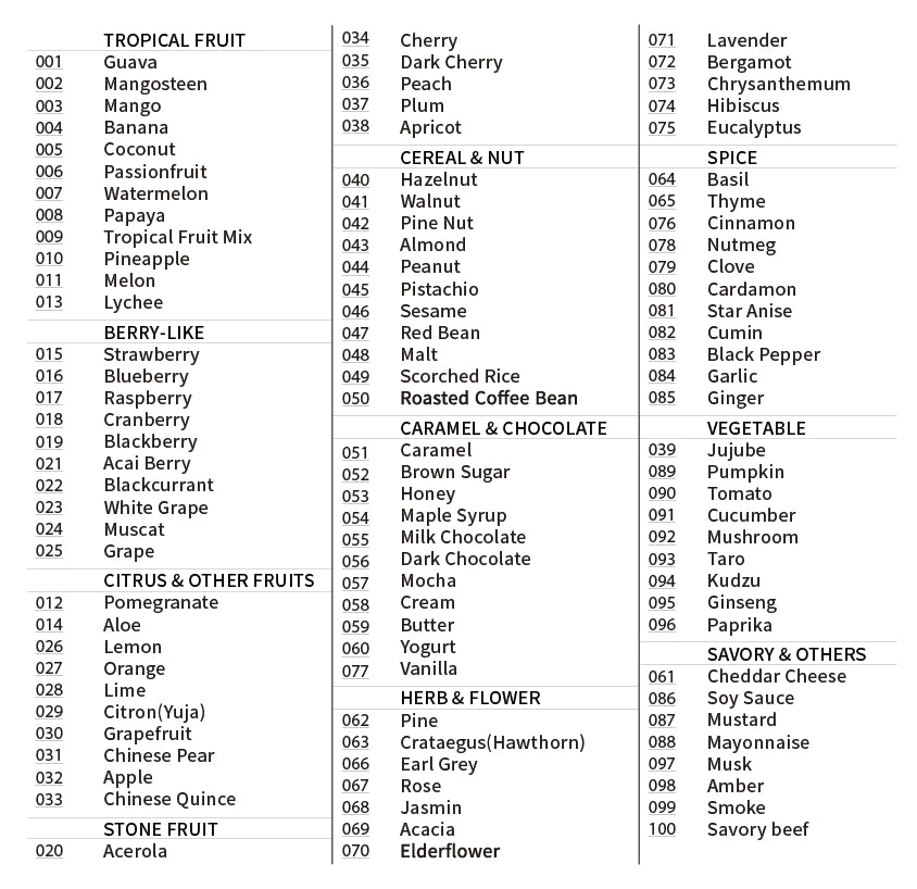 The philosophy behind the creation of the Coffee Flavor Map T100 was to develop a structured tool for analysis, empowering you to confidently describe the distinct characteristics of each roasted coffee or cup of coffee using a language commonly used by experts.
